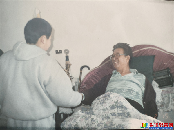 ……就這樣圍繞文學(xué)與寫作,我們與劉紹棠爺爺談了近兩個小時,臨行時老人家善解人意的說:“你們帶了相機,見一次面也難,合個影吧!”說著老人用手支撐著身體,勉強做起來,拄著拐杖,在室中艱難地挪動,他兩條腿已因肌肉萎縮而十分細(xì)弱。記得余秋雨先生曾說:“文人的魅力竟能把諾大一個世界的生僻角落,變成人人心中的故鄉(xiāng)。他們褪色的青衫里,究竟藏著什么法術(shù)呢?”其實并沒有什么法術(shù),那褪色的青衫下都是一顆為一宗又一宗學(xué)問的弘揚而枯萎的生命。