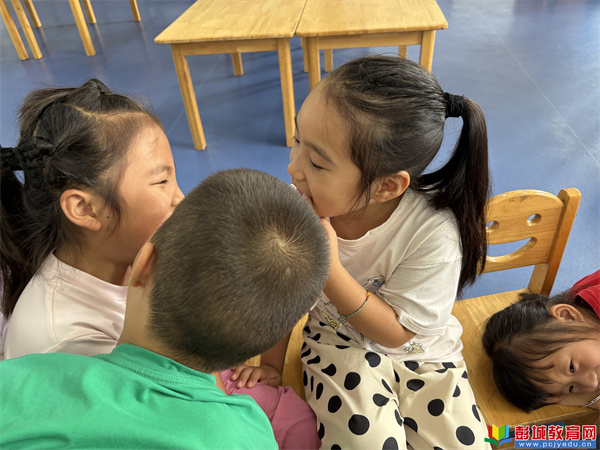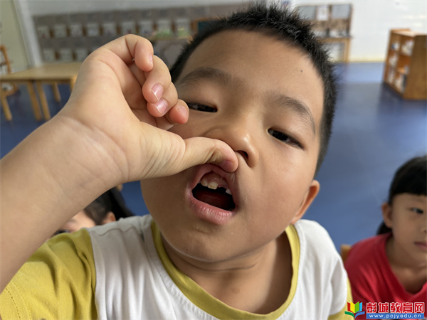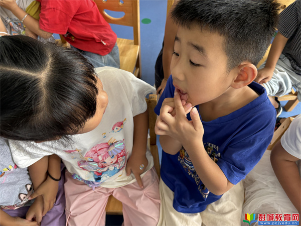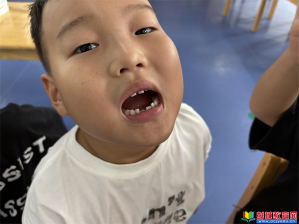 在初步激發(fā)孩子們興趣后,我們正式進(jìn)入牙齒探索與認(rèn)知環(huán)節(jié)。首先,孩子們兩兩一組開展“牙齒小觀察”活動(dòng),相互查看對(duì)方的牙齒,興奮地交流著:“我看到你的牙齒有一顆松動(dòng)啦”“我的牙齒都還沒掉呢”。