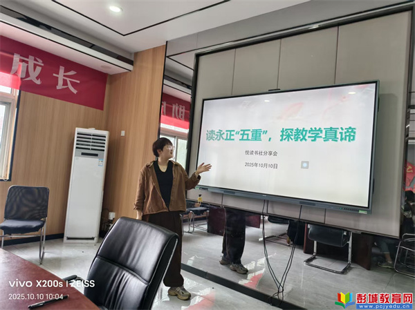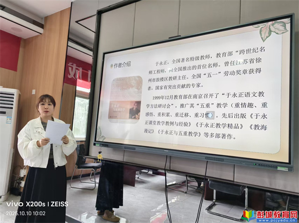 2025年10月10日,悅讀書社的教師們齊聚一堂,開展以“讀永正‘五重’,探教學(xué)真諦”為主題的讀書分享會。本次由秦老師主持分享,大家圍繞《于永正與五重教學(xué)》,從一路走一路盤點、教育觀、五重教學(xué)三個維度,深度解碼于永正的教育智慧,為教師專業(yè)成長注入新動能。