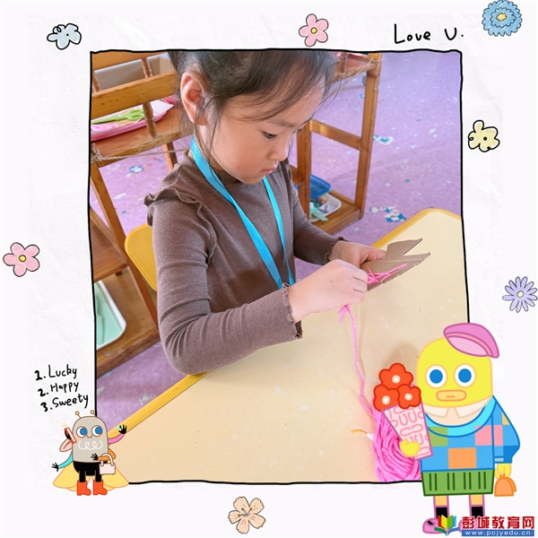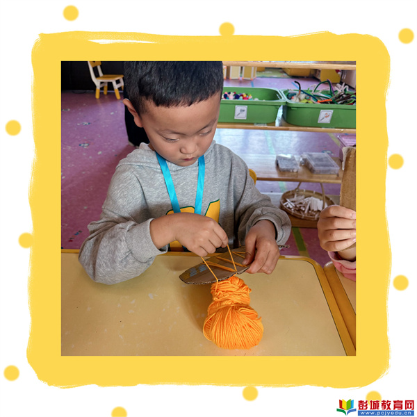 根據(jù)《3-6歲兒童學(xué)習(xí)與發(fā)展指南》中“藝術(shù)領(lǐng)域——具有初步的藝術(shù)表現(xiàn)與創(chuàng)造能力”及“健康領(lǐng)域——具有一定的平衡能力,動(dòng)作協(xié)調(diào)、靈敏”的發(fā)展目標(biāo),近日,我園開展“編玩編樂(lè)”系列課程之“毛線繞繞”創(chuàng)意活動(dòng),讓幼兒在趣味編織中提升綜合能力。