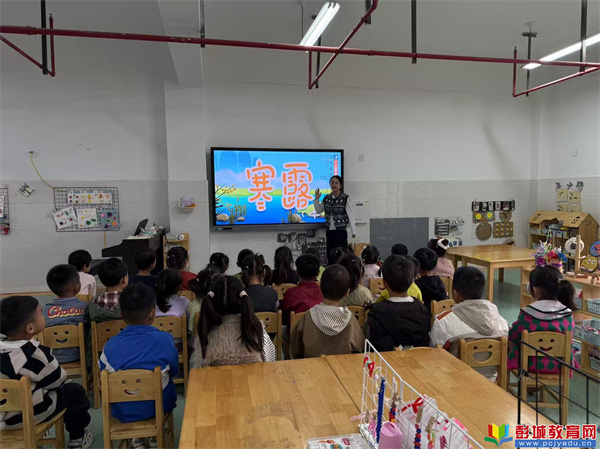 “為什么叫寒露呀?”“寒露的時候要穿厚衣服嗎?”活動從孩子們的好奇提問開始。老師沒有直接給出答案,而是通過生動的繪本、有趣的動畫,和孩子們一起聊起了“寒露”的小知識:告訴孩子們寒露是秋天的第五個節(jié)氣,天氣會更涼、露水會更重;還分享了寒露時節(jié)“吃芝麻”“賞菊花”的小習(xí)俗。孩子們聽得認(rèn)真、問得積極,在輕松的聊天中,悄悄把傳統(tǒng)節(jié)氣的知識記在了心里。