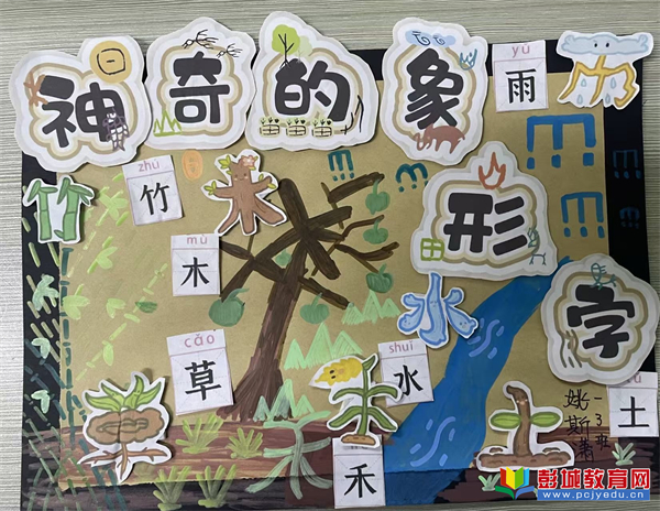 本次特色作業(yè)以“日、月、山、水”等基礎(chǔ)象形字為載體,鼓勵(lì)孩子們通過繪畫、剪貼、立體制作等多種方式,理解字形與字義之間的聯(lián)系。孩子們的作品充滿想象:有的為太陽畫上燦爛的笑容,讓“日”字充滿溫度;有的用層層疊疊的綠色描繪“山”的連綿;還有的將“水”化作流淌的藍(lán)色絲帶,賦予靜態(tài)的文字以動態(tài)的美感。更有同學(xué)嘗試立體創(chuàng)作,讓漢字“站”起來,成為可觸摸、可感知的存在。這些作品不僅是語文學(xué)習(xí)的成果,更是孩子們思維與審美能力的生動體現(xiàn)。