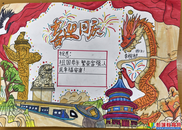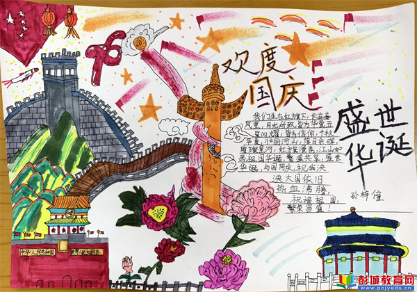 四年級學(xué)生通過“我心中的國慶”手抄報繪制,用畫筆和文字表達(dá)對國慶的理解,提升他們的繪畫和文字組織能力,更加深孩子們對國慶的認(rèn)知。活動中,同學(xué)們積極參與,精心設(shè)計,用心制作,以書畫傳情,用手中的畫筆描繪祖國的大好山河,抒發(fā)心中的愛國之情,繪出了他們心中對祖國的美好祝愿,為偉大的祖國母親“慶生”。