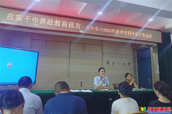 為確保新學(xué)期各項(xiàng)工作平穩(wěn)有序開展,明確目標(biāo)任務(wù),凝聚工作合力,8月30日,大許實(shí)小組織召開2025年秋季學(xué)期開學(xué)工作會(huì)議。全體教職工參會(huì),會(huì)議由梁媛校長(zhǎng)主持。