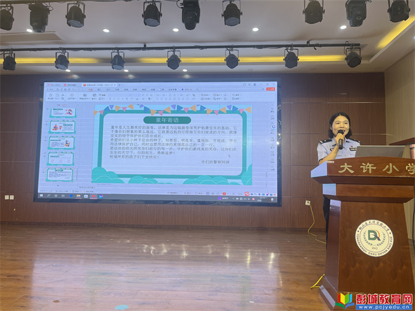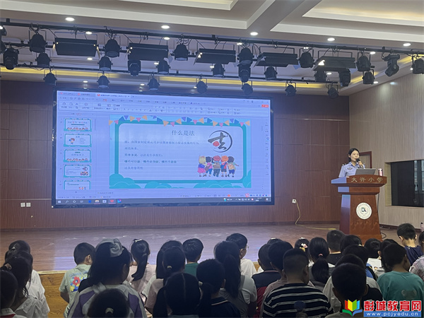 為了讓法制的種子在幼小的心靈中生根發(fā)芽,9月11日下午,大許實小特邀徐州市銅山區(qū)公安局岳警官,為二年級全體同學(xué)舉辦了一場別開生面的法制啟蒙講座。本次活動以“與法‘童’行,快樂成長”為主題,通過生動有趣的互動方式,為孩子們上了一堂難忘的法治啟蒙課。