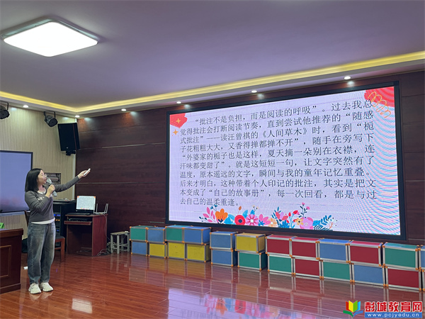 程亭亭老師聚焦《批注:讓閱讀有跡可循》的教學啟示。她展示了書中"符號批注""提問批注""情感批注"等多元方法,強調批注不僅是閱讀工具,更是學生與文本深度對話的橋梁。"讓學生把思考痕跡留在字里行間,就是在培養(yǎng)終身閱讀者",程老師結合語文課堂實例,分享了如何通過階梯式訓練提升學生閱讀品質。