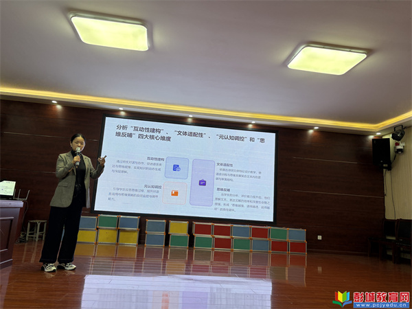 鄭玉婷老師解析了《構建思維階梯,實現(xiàn)語言與思維的深度共生》的核心觀點。她以英語教學為例,說明書中提出的"三階思維訓練模型"如何落地:從基礎語言操練(記憶理解),到情境遷移應用(分析應用),最終實現(xiàn)創(chuàng)造性表達(評價創(chuàng)造)。"語言是思維的載體,思維是語言的靈魂",鄭老師認為該書為學科融合教學提供了新路徑。