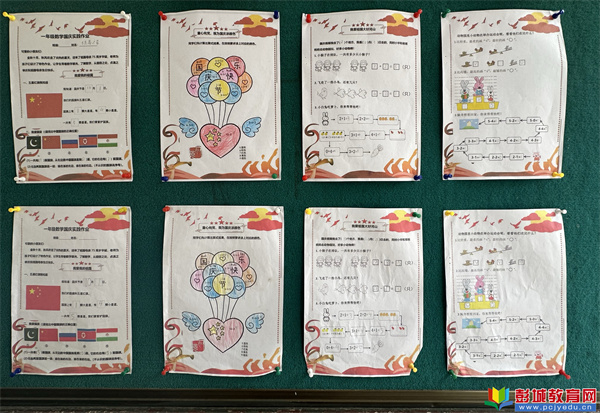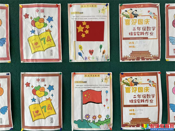 二年級(jí)的同學(xué)則化身“小小愛(ài)國(guó)設(shè)計(jì)師”,他們的作品更具結(jié)構(gòu)感,題目以國(guó)慶為主題,將數(shù)學(xué)運(yùn)算、幾何測(cè)量與愛(ài)國(guó)情感培養(yǎng)相融合,通過(guò)涂色游戲、國(guó)旗繪制等親子互動(dòng)形式,激發(fā)孩子學(xué)習(xí)興趣,在實(shí)踐操作中提升計(jì)算能力與空間思維,實(shí)現(xiàn)了知識(shí)性、趣味性與家國(guó)情懷教育的有機(jī)結(jié)合。
