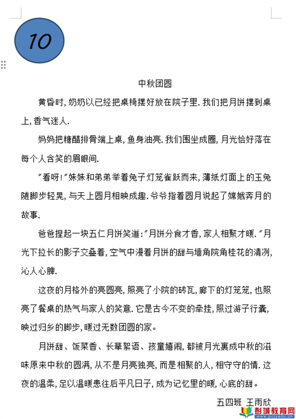 高年級的“雙節(jié)征文比賽”中,同學們以筆為媒,抒發(fā)心聲。有的文章追憶中秋闔家圍坐的溫馨,字里行間滿是對親情的珍視;有的聚焦國慶見聞,從閱兵視頻到家鄉(xiāng)變化,抒發(fā)“強國有我”的豪情;更有同學將兩者結合,在“月是故鄉(xiāng)明”的感慨中,融入對祖國發(fā)展的自信。