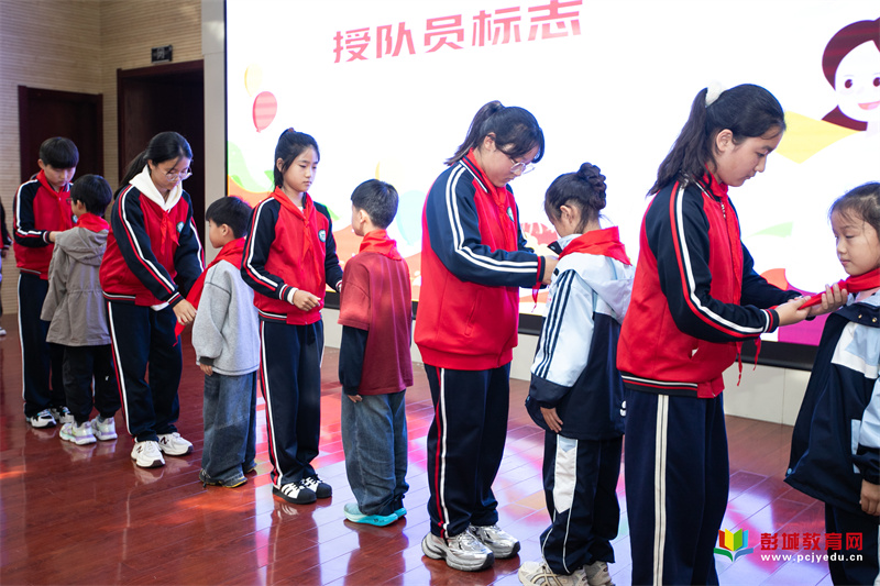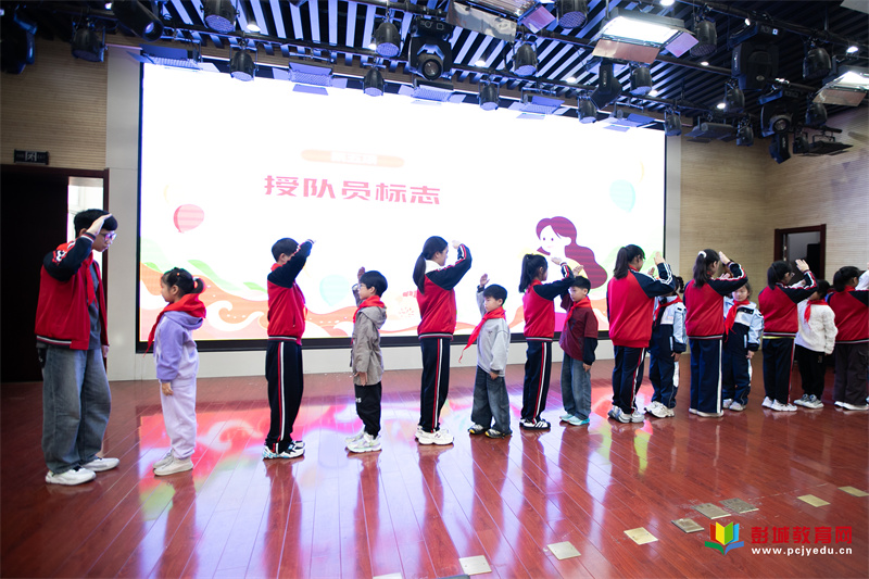 “愛祖國,愛人民,鮮艷的紅領(lǐng)巾飄揚(yáng)在前胸……”全場隊(duì)員齊聲高唱《中國少年先鋒隊(duì)隊(duì)歌》。嘹亮的歌聲回蕩在校園上空,唱出了隊(duì)員們心中的光榮與夢想。大隊(duì)輔導(dǎo)員韓向前老師鄭重宣讀了新隊(duì)員名單,每一個(gè)被念出的名字,都承載著一份嶄新的責(zé)任與期待。