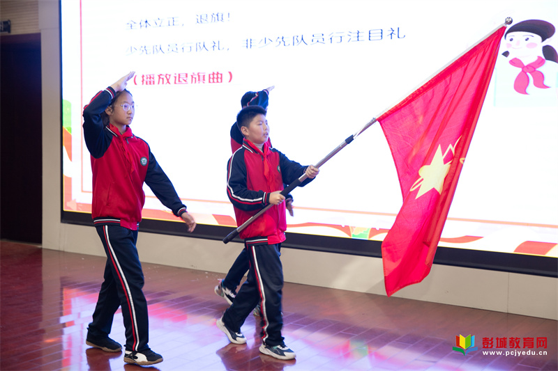 儀式的最后,全體隊(duì)員呼號:“準(zhǔn)備著:為共產(chǎn)主義事業(yè)而奮斗!”——“時(shí)刻準(zhǔn)備著!”這呼號聲鏗鏘有力,響徹云霄。在莊嚴(yán)的《退旗曲》中,全體隊(duì)員敬禮,目送隊(duì)旗退場,儀式圓滿禮成。