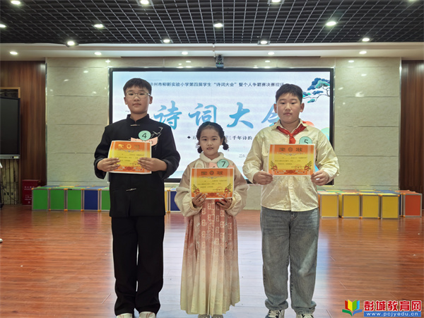 總決賽現(xiàn)場將為冠、亞、季軍頒發(fā)獎狀,并授予“校級詩詞大賽優(yōu)勝選手”稱號,這3名同學(xué)將正式成為學(xué)校代表,備戰(zhàn)11月3日的市級初賽。