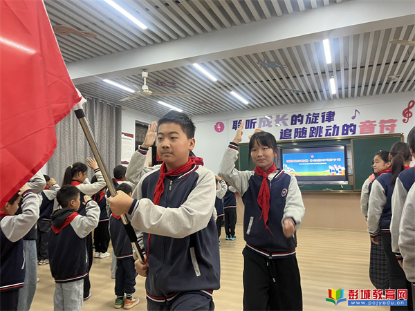 《隊(duì)旗出旗曲》奏響,少先隊(duì)員和輔導(dǎo)員同敬隊(duì)禮,新隊(duì)員們望向隊(duì)旗的身影里滿是認(rèn)真。接著,他們唱起隊(duì)歌,用嘹亮的歌聲唱響對(duì)少先隊(duì)的向往,稚嫩的聲音里滿是朝氣。