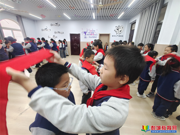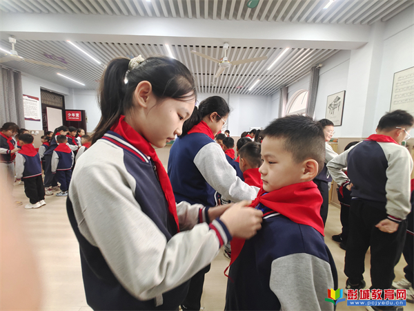 最讓人難忘的是老隊(duì)員為新隊(duì)員佩戴紅領(lǐng)巾的環(huán)節(jié)。老隊(duì)員捧著紅領(lǐng)巾上前,輕輕為新伙伴系好,還細(xì)心撫平邊角。鮮紅的紅領(lǐng)巾再胸前飄揚(yáng),不僅是一份榮譽(yù),更是一份責(zé)任的傳遞。