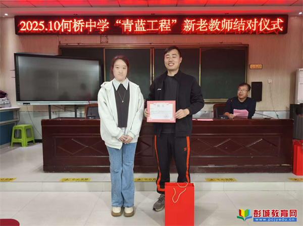 秋光正好,師意綿長;杏壇接力,青藍同輝。為傳承優(yōu)良教風、助力青年教師成長為進一步加強師資隊伍建設,推動青年教師快速成長,發(fā)揮骨干教師的示范引領作用,何橋中心中學隆重舉行“青藍工程”師徒結對儀式。一場莊嚴而溫馨的拜師禮,不僅承載著教育的薪火,更開啟了共育桃李的新篇章。
