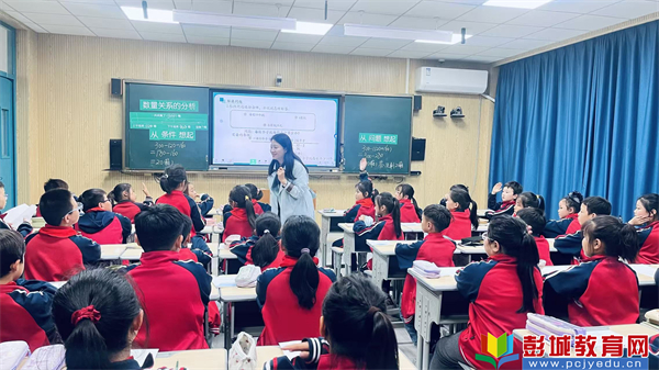 為深化課堂教學改革,充分發(fā)揮教研員專業(yè)引領作用,營造“抓教學、重質量”的濃厚教研氛圍。10月16日下午銅山區(qū)教師發(fā)展中心小學教研員朱開玉主任和朱愛玲主任走銅山區(qū)新區(qū)實驗小學,開展“我是教研員,我上公開課”活動,新區(qū)教育集團數(shù)學團隊所有教師參加此次活動。兩位教研員同課異構,執(zhí)教蘇教版三年級新教材課例《數(shù)量關系的分析(一)》。