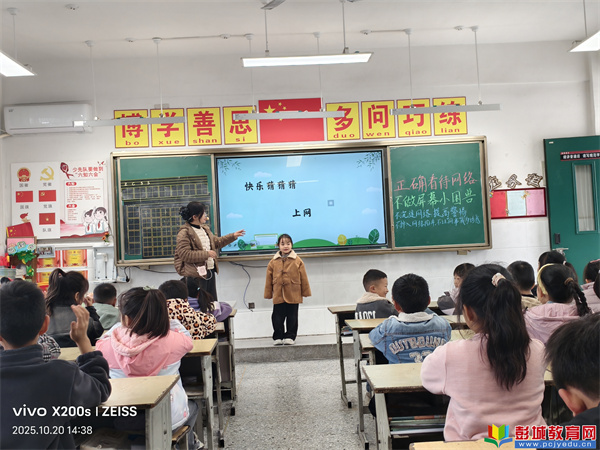 班會伊始,“快樂猜猜猜”環(huán)節(jié)點(diǎn)燃?xì)夥?。班主任通過“信息傳遞快”“能看視頻能聊天”等關(guān)鍵詞提示,同學(xué)們很快猜出“上網(wǎng)”一詞,自然導(dǎo)入主題,激發(fā)了參與興趣。